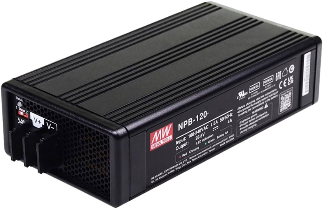 This is a high-quality, safety-certified AC-to-DC charger for DIY battery packs. It supports selectable 2-stage or 3-stage charging via DIP switches, and uses a proper CCCV (constant-current / constant-voltage) profile that works well for lithium packs when configured correctly (LFP, NMC, Lead Acid). It can also be used with sodium-ion packs that are designed for correct number of cells in series and not exceeding max cell voltage.
